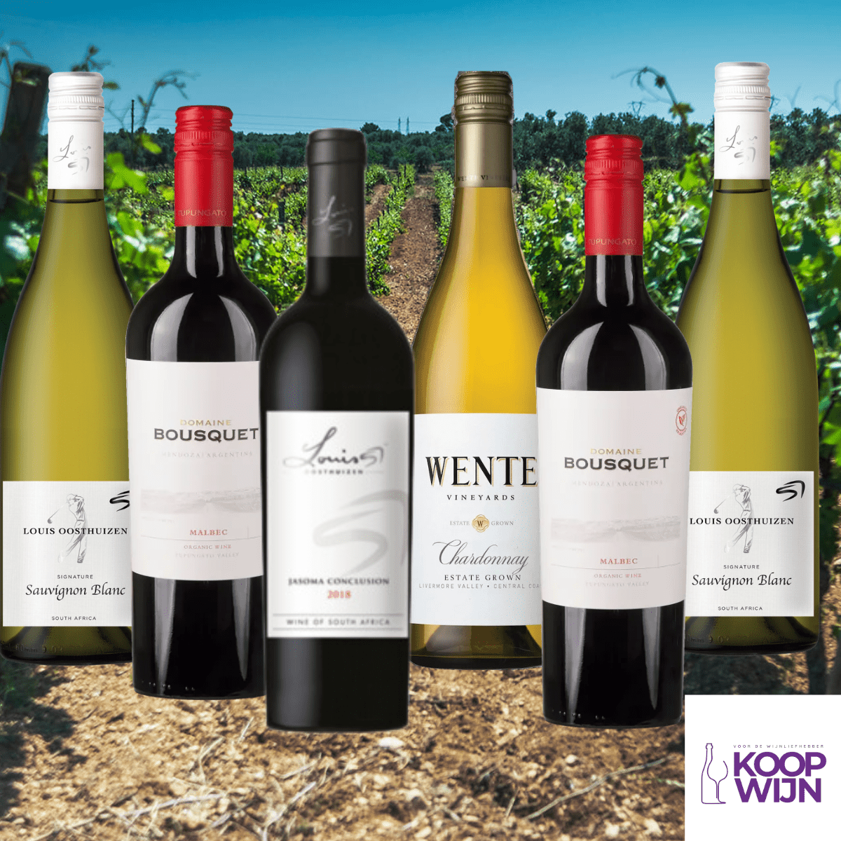 Van de fruitige aroma's van de stuivende Zuid-Afrikaanse Sauvignon Blanc van Louis57 Blanc tot de fruitige maar volle karakteristieken van Argentijnse Bousqet Malbec, ons wijnpakket neemt je mee op een onvergetelijke reis vol smaakvolle ontdekkingen. Elke fles vertelt zijn eigen verhaal en laat je proeven van de rijke diversiteit en unieke terroirs van de Nieuwe Wereld.